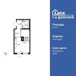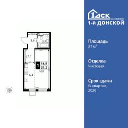 Продаётся квартира-студия номер 38 общей площадью 31.2 кв.м. на 5-м этаже 24 этажного здания. Чистовая отделка.