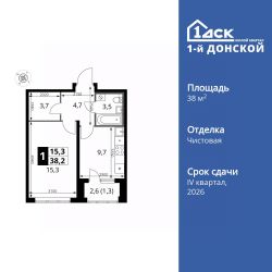 Продаётся 1-к квартира номер 1 общей площадью 38.2 кв.м. на 2-м этаже 24 этажного здания. Чистовая отделка.
