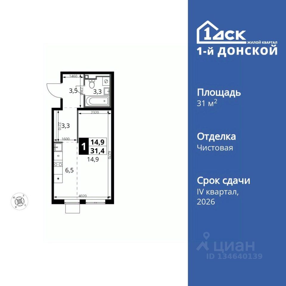 Продаётся квартира-студия номер 188 общей площадью 31.5 кв.м. на 20-м этаже 24 этажного здания. Чистовая отделка.