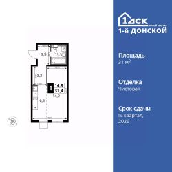 Продаётся квартира-студия номер 108 общей площадью 31.4 кв.м. на 12-м этаже 24 этажного дома. Чистовая отделка.