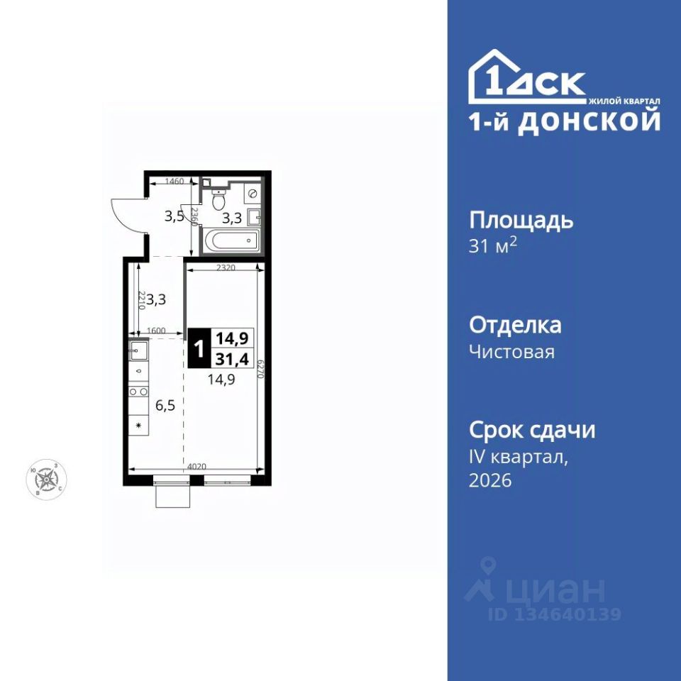Продаётся квартира-студия номер 218 общей площадью 31.5 кв.м. на 23-м этаже 24 этажного здания. Чистовая отделка.