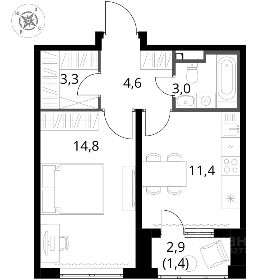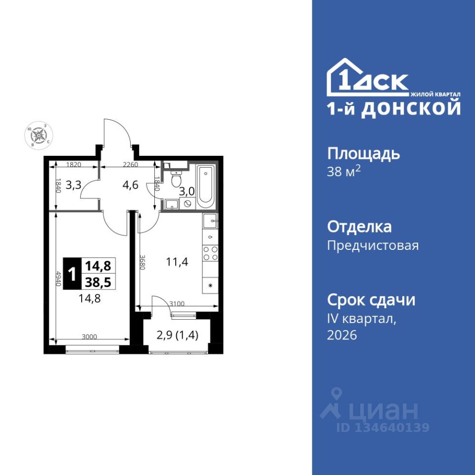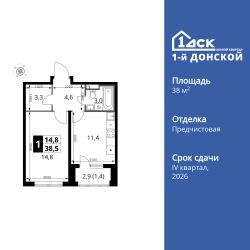 Продаётся 1-к квартира номер 231 общей площадью 38.5 кв.м. на 2-м этаже 24 этажного здания. Отделка Whitebox.