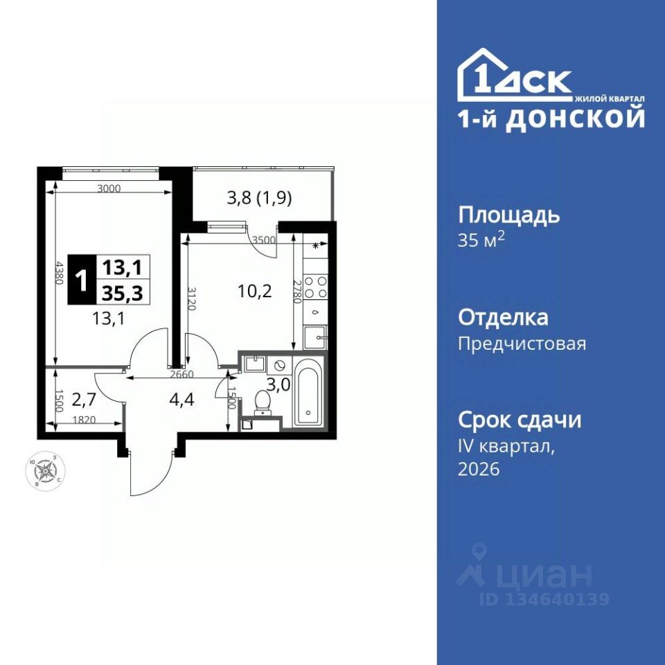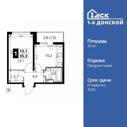 Продаётся 1-к квартира номер 236 общей площадью 35.3 кв.м. на 2-м этаже 24 этажного здания. Отделка Whitebox.