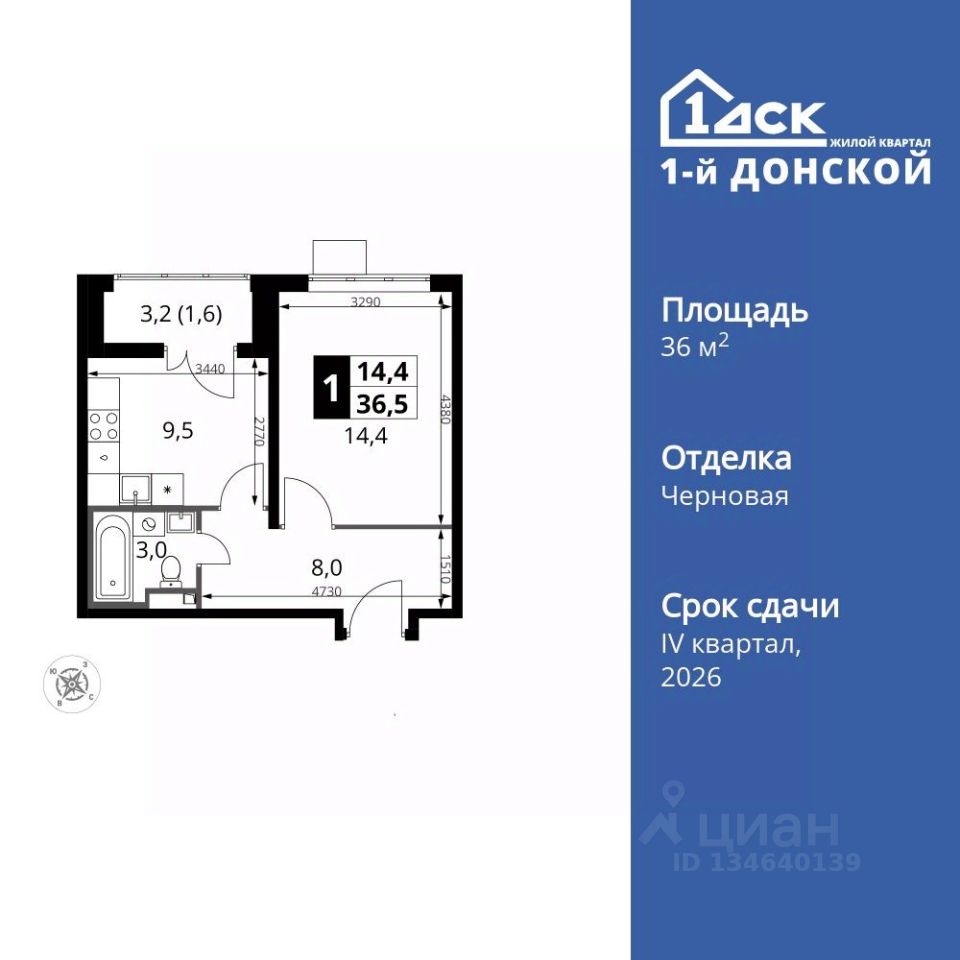 Продаётся 1-к квартира номер 332 общей площадью 36.5 кв.м. на 11-м этаже 24 этажного дома. Отделка Whitebox.