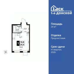 Продаётся квартира-студия номер 623 общей площадью 24.4 кв.м. на 17-м этаже 24 этажного здания. Отделка Whitebox.