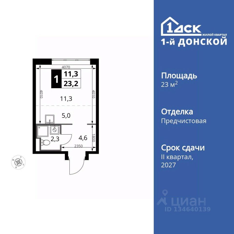 Продаётся квартира-студия номер 6 общей площадью 23.2 кв.м. на 2-м этаже 24 этажного здания. Отделка Whitebox.