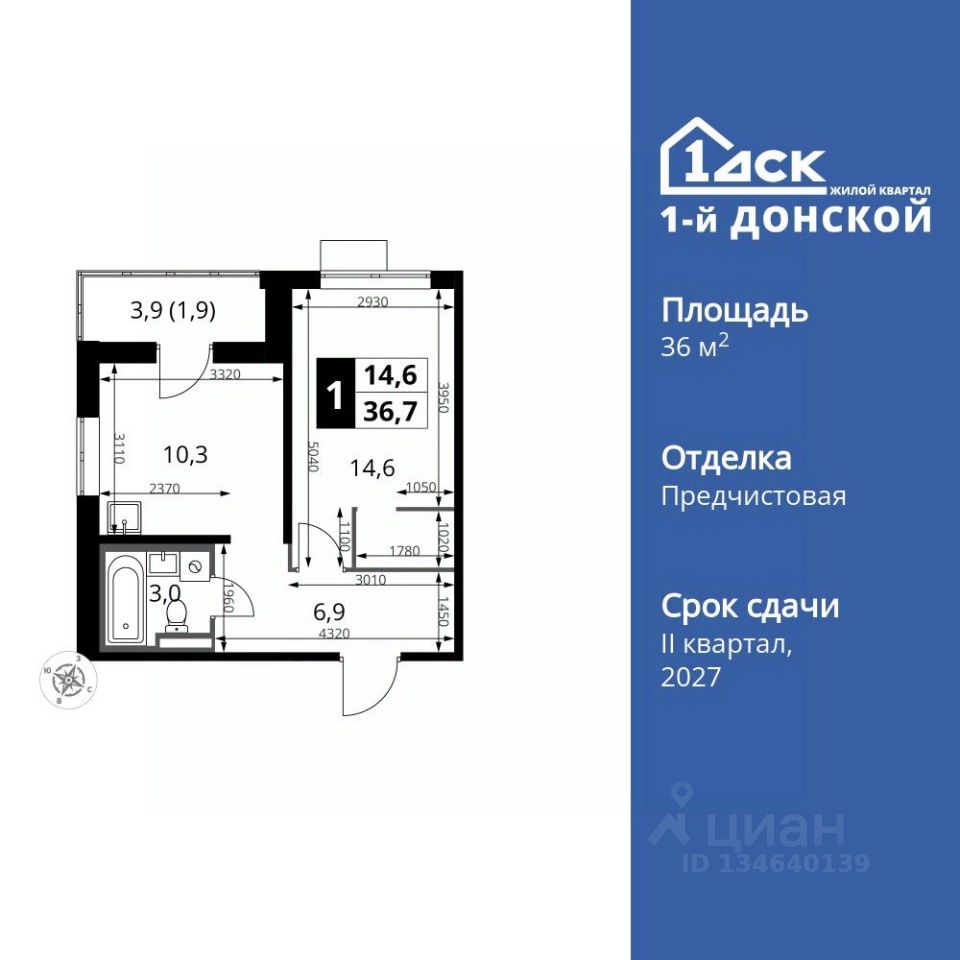 Продаётся 1-к квартира номер 102 общей площадью 36.7 кв.м. на 11-м этаже 24 этажного здания. Отделка Whitebox.