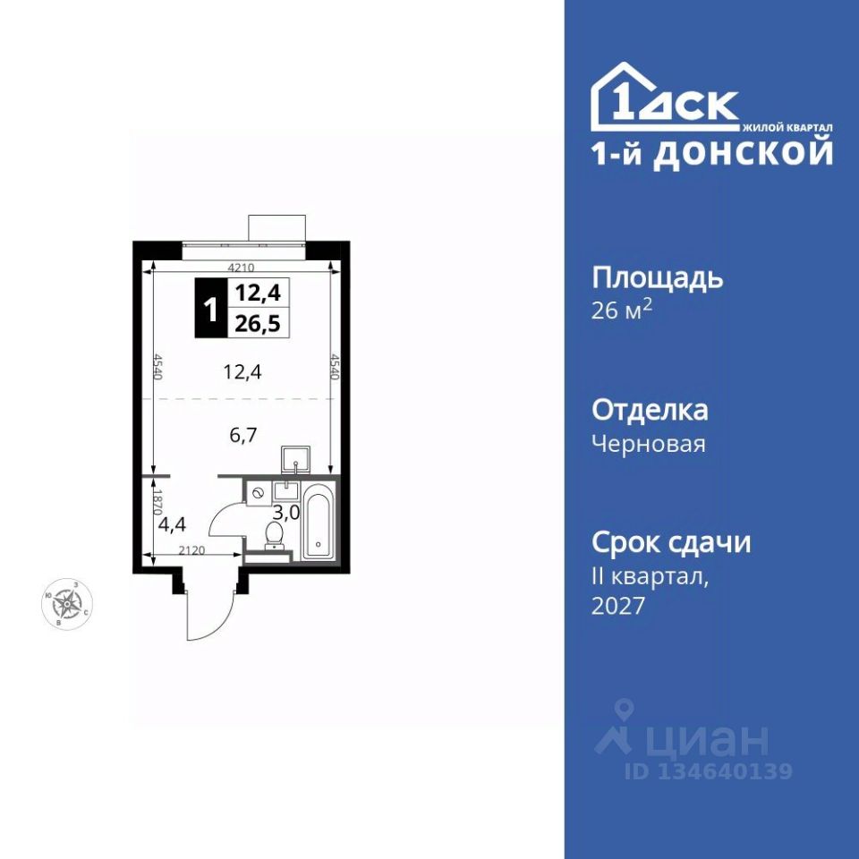 Продаётся 1-к квартира номер 104 общей площадью 26.5 кв.м. на 11-м этаже 24 этажного дома. Отделка Whitebox.