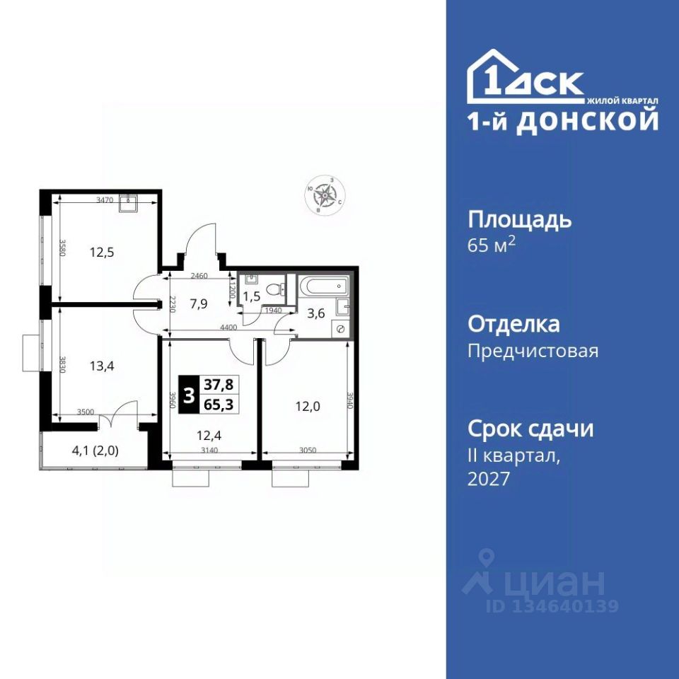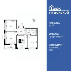 Продаётся 3-к квартира номер 156 общей площадью 65.3 кв.м. на 16-м этаже 24 этажного здания. Отделка Whitebox.