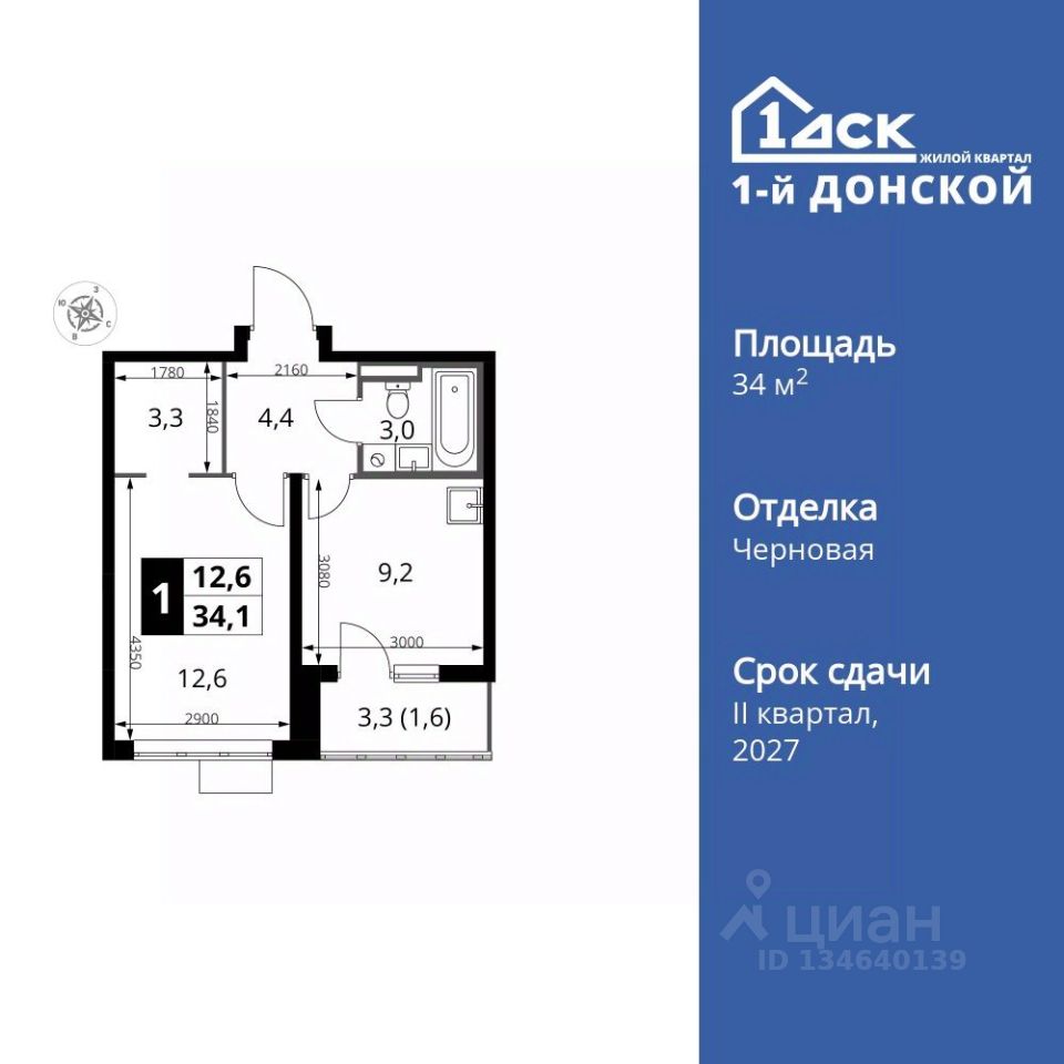 Продаётся 1-к квартира номер 579 общей площадью 34.1 кв.м. на 10-м этаже 24 этажного дома. Отделка Whitebox.