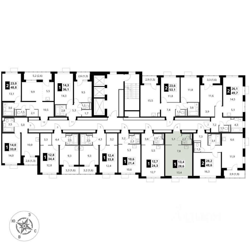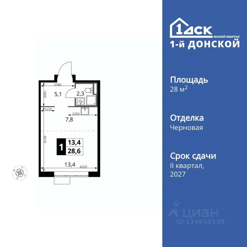 Продаётся 1-к квартира номер 586 общей площадью 28.6 кв.м. на 11-м этаже 24 этажного дома. Отделка Whitebox.