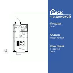 Продаётся квартира-студия номер 653 общей площадью 24.3 кв.м. на 17-м этаже 24 этажного здания. Отделка Whitebox.