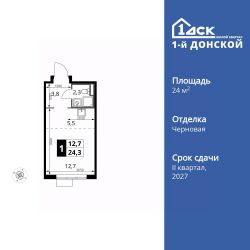 Продаётся 1-к квартира номер 609 общей площадью 24.3 кв.м. на 13-м этаже 24 этажного дома. Отделка Whitebox.