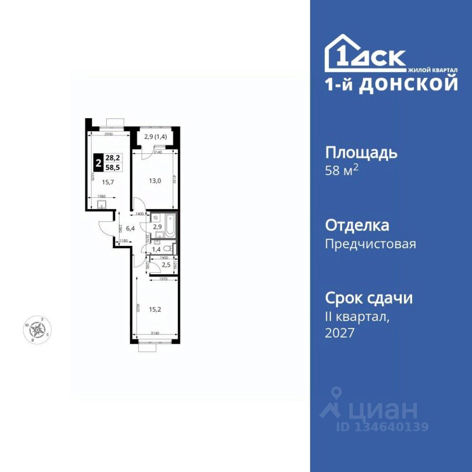 Продаётся 2-к квартира номер 936 общей площадью 58.5 кв.м. на 24-м этаже 24 этажного дома. Отделка Whitebox.