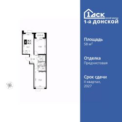 Продаётся 2-к квартира номер 882 общей площадью 58.5 кв.м. на 18-м этаже 24 этажного здания. Отделка Whitebox.