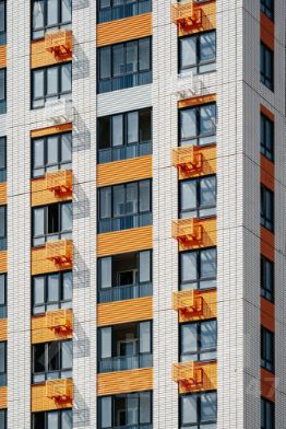 Секции-маяки формируют у зданий визуальную L-форму, что придает застройке структуру и ритмику объемов. На ощущение динамики работает и разная этажность зданий.