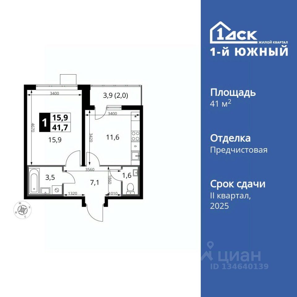Продаётся 1-к квартира номер 30 общей площадью 41.6 кв.м. на 9-м этаже 24 этажного здания. Отделка Whitebox. Цена с учётом скидки.
