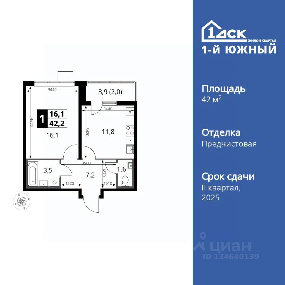 Продаётся 1-к квартира номер 86 общей площадью 42.1 кв.м. на 23-м этаже 24 этажного здания. Отделка Whitebox. Цена с учётом скидки.