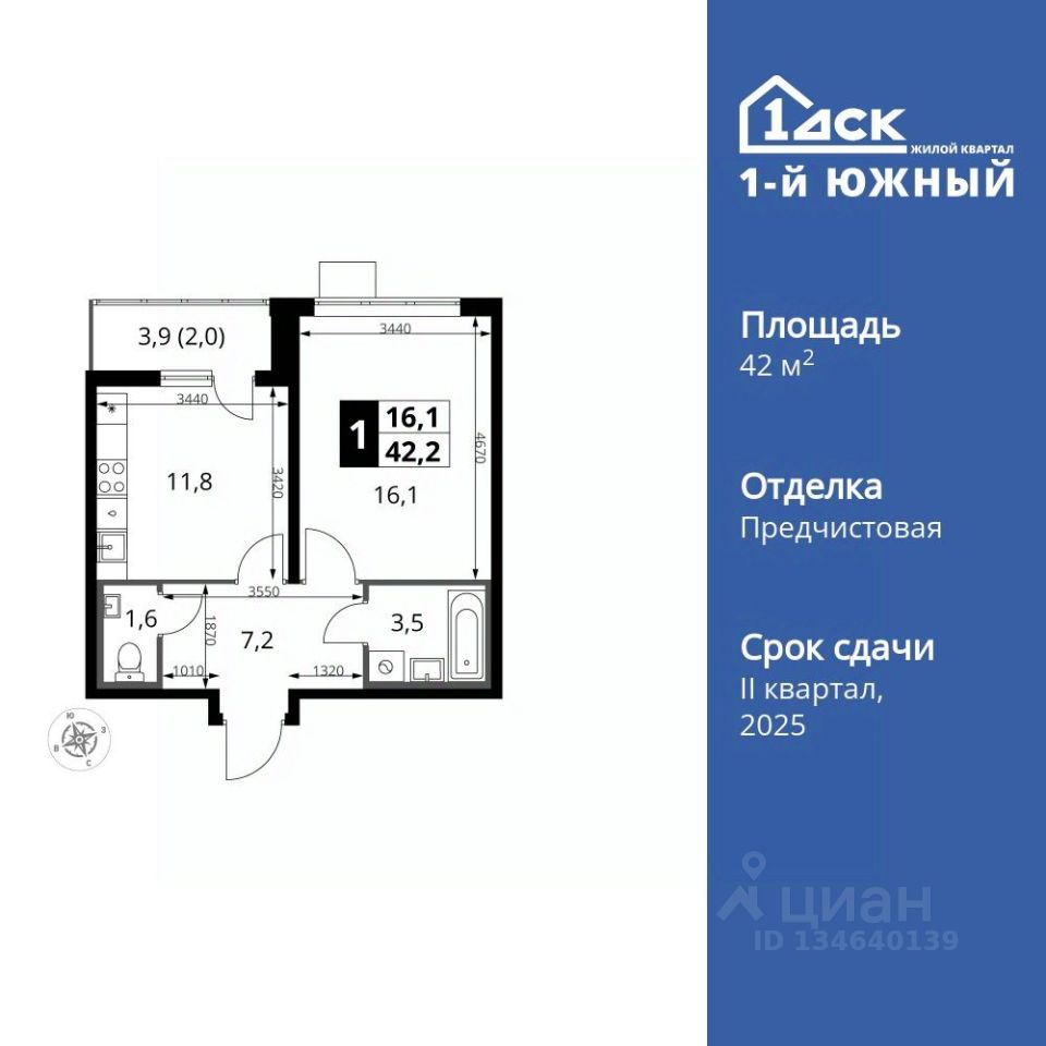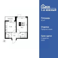 Продаётся 1-к квартира номер 91 общей площадью 42.1 кв.м. на 24-м этаже 24 этажного здания. Отделка Whitebox. Цена с учётом скидки.