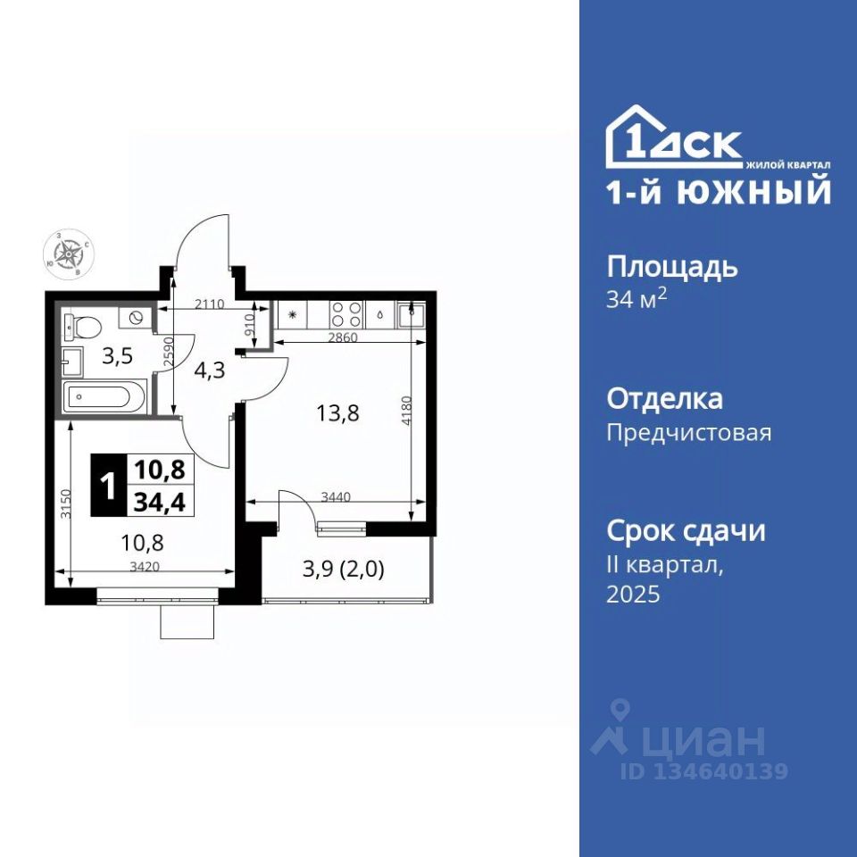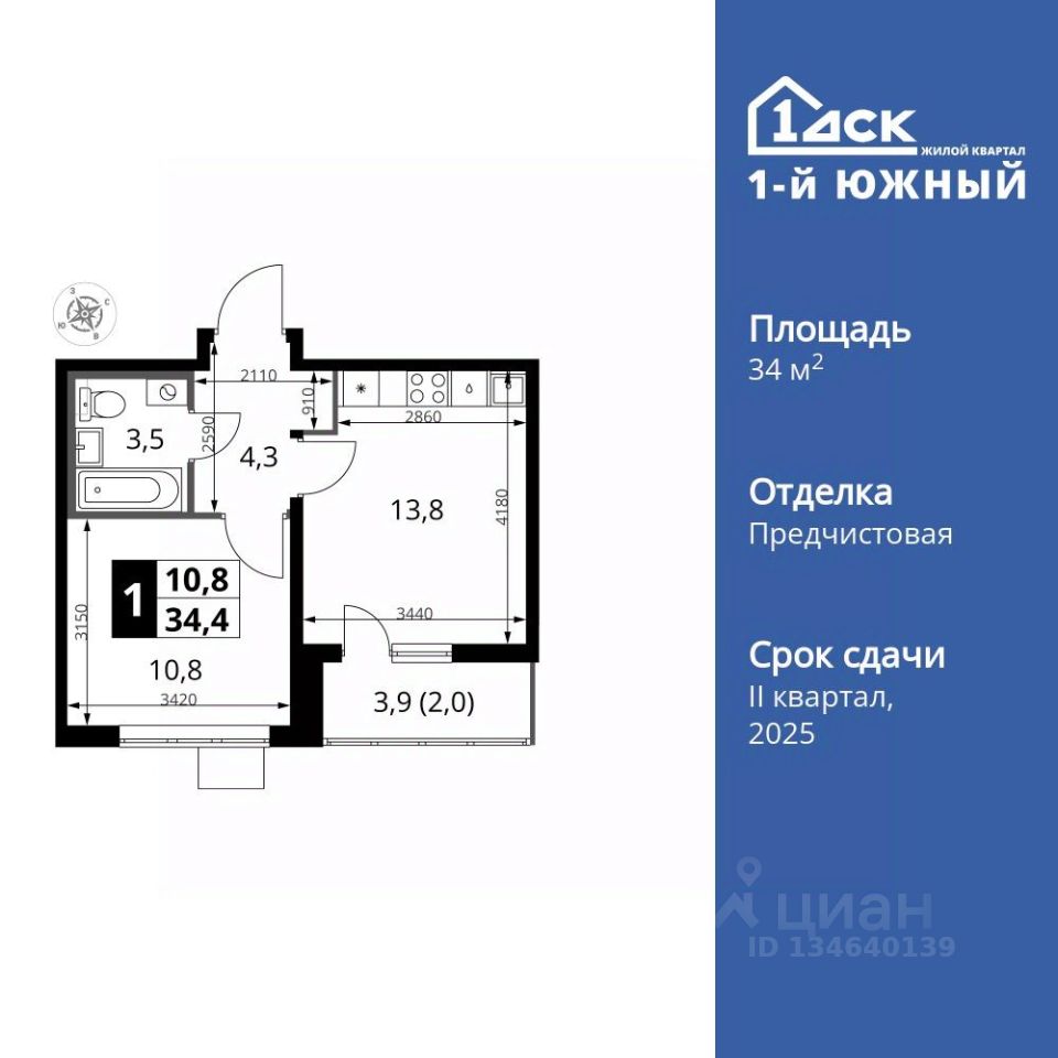 Продаётся 1-к квартира номер 182 общей площадью 34.4 кв.м. на 16-м этаже 24 этажного здания. Отделка Whitebox. Цена с учётом скидки.