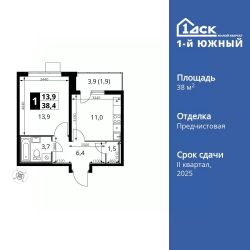 Продаётся 1-к квартира номер 221 общей площадью 38.2 кв.м. на 23-м этаже 24 этажного здания. Отделка Whitebox. Цена с учётом скидки.