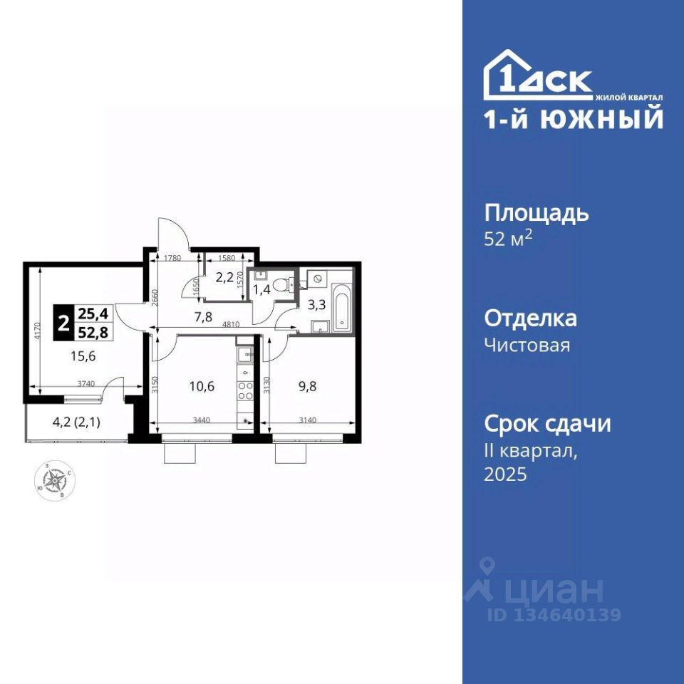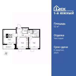 Продаётся 2-к квартира номер 300 общей площадью 52.8 кв.м. на 19-м этаже 25 этажного здания. Чистовая отделка. Цена с учётом скидки.