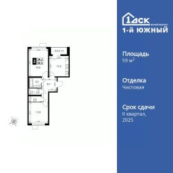 Продаётся 2-к квартира номер 302 общей площадью 59.5 кв.м. на 19-м этаже 25 этажного здания. Чистовая отделка. Цена с учётом скидки.