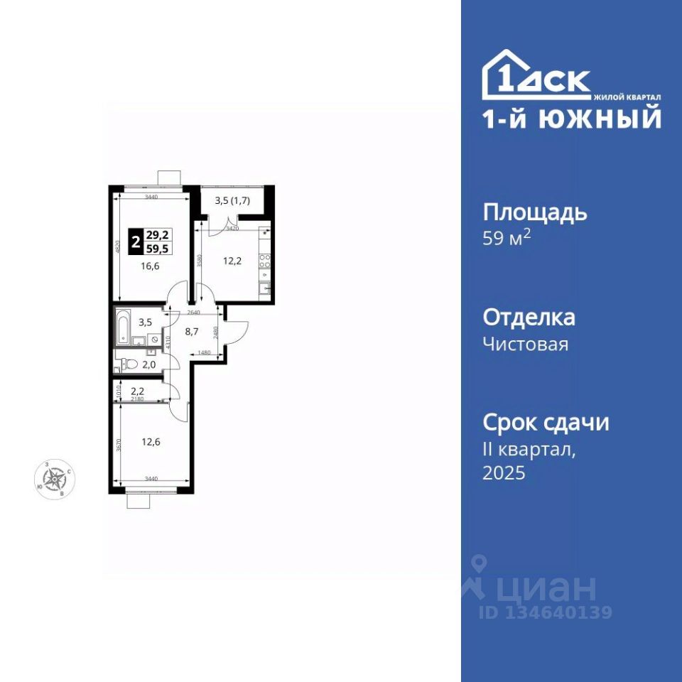 Продаётся 2-к квартира номер 314 общей площадью 59.5 кв.м. на 22-м этаже 25 этажного дома. Чистовая отделка. Цена с учётом скидки!