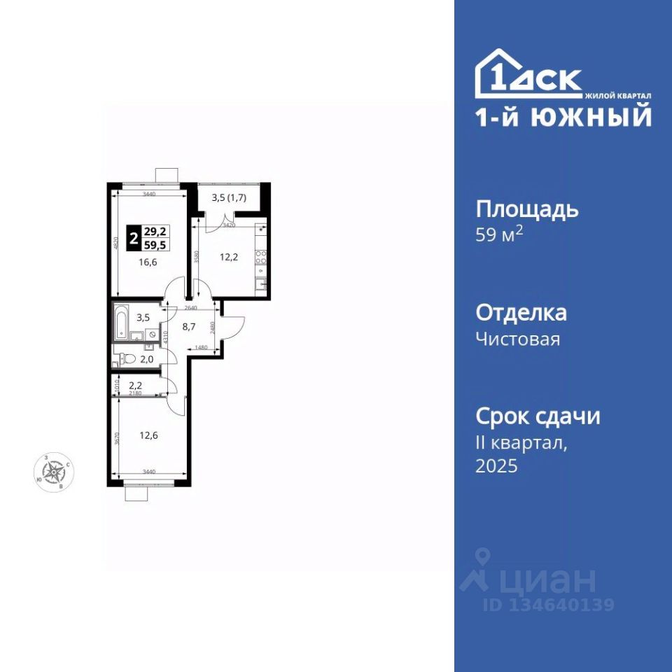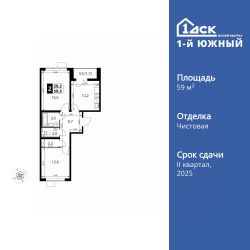 Продаётся 2-к квартира номер 326 общей площадью 59.5 кв.м. на 25-м этаже 25 этажного здания. Чистовая отделка. Цена с учётом скидки.
