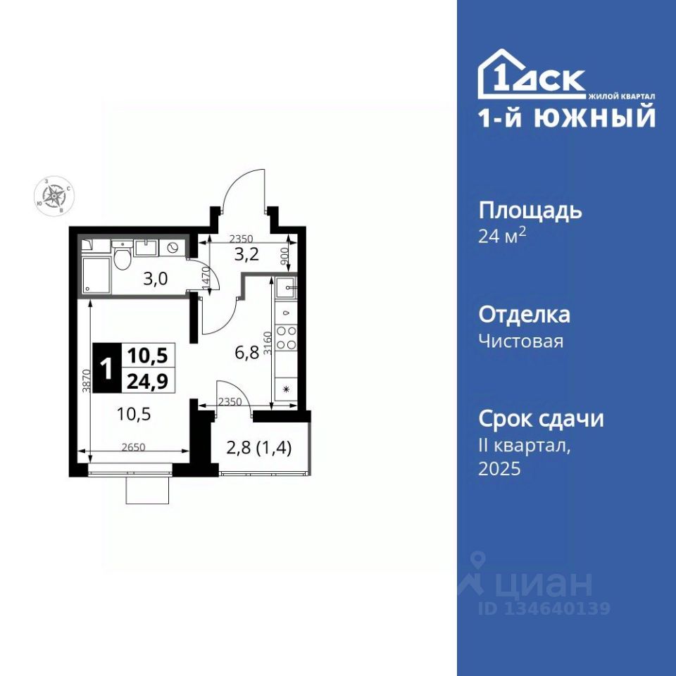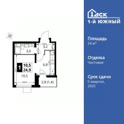 Продаётся квартира-студия номер 365 общей площадью 24.7 кв.м. на 7-м этаже 25 этажного здания. Чистовая отделка. Цена с учётом скидки.