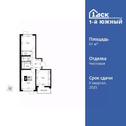 Продаётся 2-к квартира номер 402 общей площадью 61.3 кв.м. на 12-м этаже 25 этажного здания. Чистовая отделка. Цена с учётом скидки.