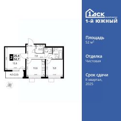 Продаётся 2-к квартира номер 490 общей площадью 52.7 кв.м. на 25-м этаже 25 этажного здания. Чистовая отделка. Цена с учётом скидки.