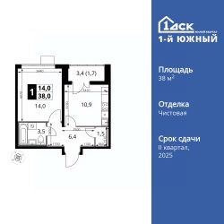 Продаётся 1-к квартира номер 494 общей площадью 38 кв.м. на 25-м этаже 25 этажного здания. Чистовая отделка. Цена с учётом скидки.
