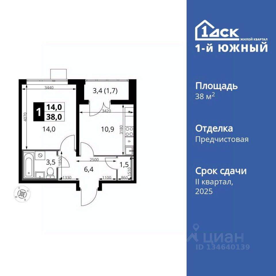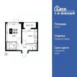 Продаётся 1-к квартира номер 662 общей площадью 38 кв.м. на 25-м этаже 25 этажного здания. Отделка Whitebox. Цена с учётом скидки.