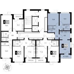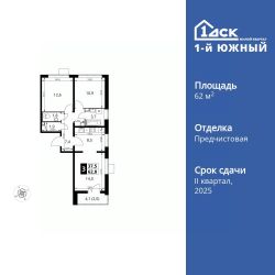 Продаётся 3-к квартира номер 691 общей площадью 62.5 кв.м. на 9-м этаже 25 этажного здания. Отделка Whitebox. Цена с учётом скидки.