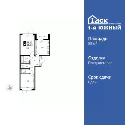 Продаётся 2-к квартира номер 730 общей площадью 59.5 кв.м. на 18-м этаже 25 этажного здания. Отделка Whitebox. Цена с учётом скидки.