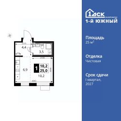 Продаётся квартира-студия номер 198 общей площадью 25 кв.м. на 15-м этаже 24 этажного здания. Чистовая отделка.