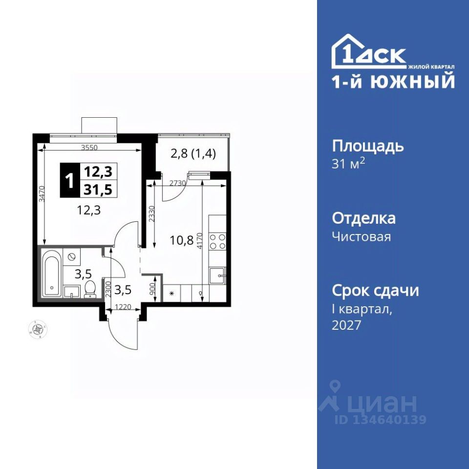 Продаётся 1-к квартира номер 235 общей площадью 31.5 кв.м. на 19-м этаже 24 этажного здания. Чистовая отделка.