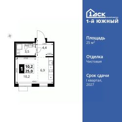 Продаётся квартира-студия номер 255 общей площадью 25 кв.м. на 22-м этаже 24 этажного здания. Чистовая отделка.