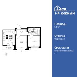 Продаётся 2-к квартира номер 623 общей площадью 53.7 кв.м. на 15-м этаже 24 этажного дома. Отделка Whitebox.