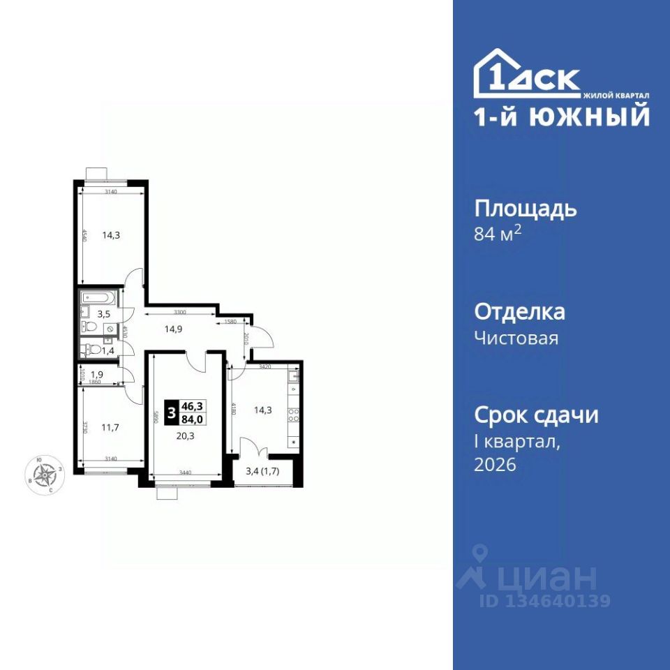 Продаётся 3-к квартира номер 69 общей площадью 84 кв.м. на 19-м этаже 25 этажного здания. Чистовая отделка. Цена с учётом скидки.