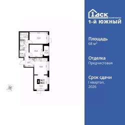 Продаётся 3-к квартира номер 319 общей площадью 68.2 кв.м. на 23-м этаже 25 этажного здания. Отделка Whitebox. Цена с учётом скидки.