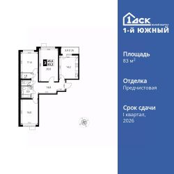 Продаётся 3-к квартира номер 197 общей площадью 83.2 кв.м. на 2-м этаже 25 этажного здания. Отделка Whitebox. Цена с учётом скидки.