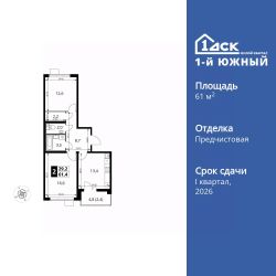 Продаётся 2-к квартира номер 482 общей площадью 61.4 кв.м. на 22-м этаже 24 этажного здания. Отделка Whitebox. Цена с учётом скидки.