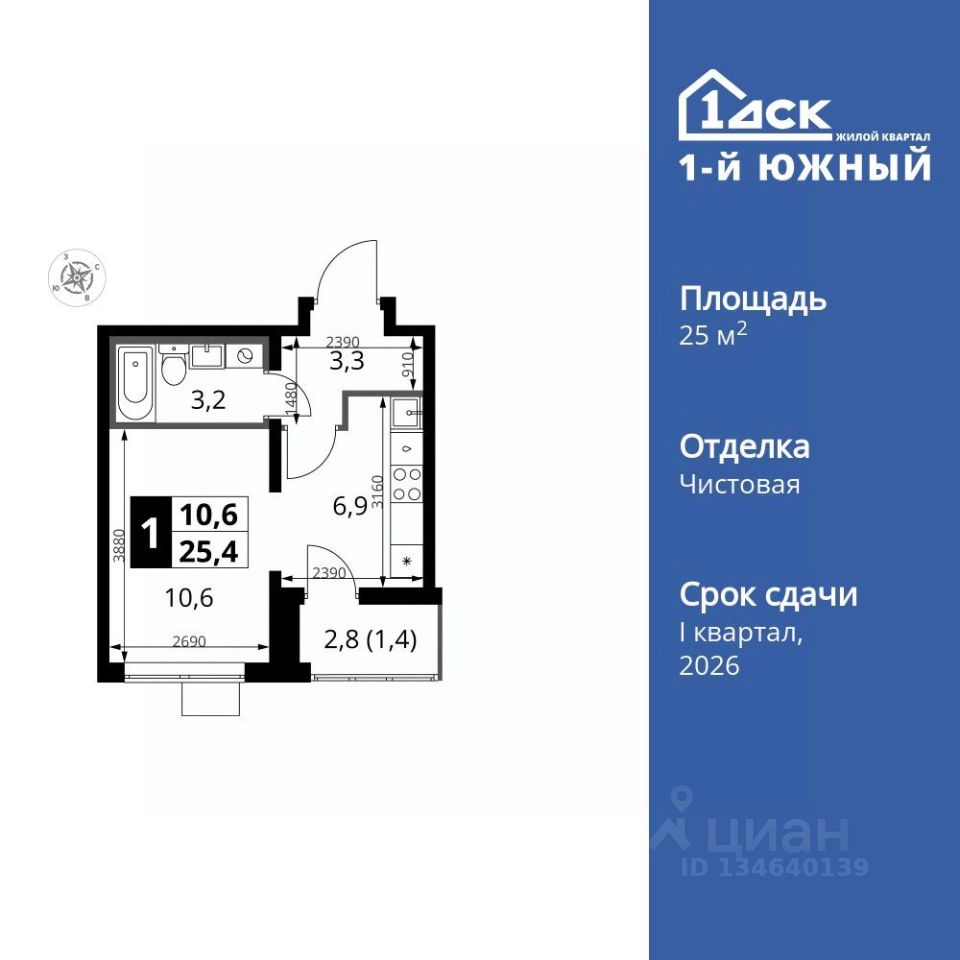 Продаётся квартира-студия номер 494 общей площадью 25.4 кв.м. на 24-м этаже 24 этажного здания. Чистовая отделка. Цена с учётом скидки.