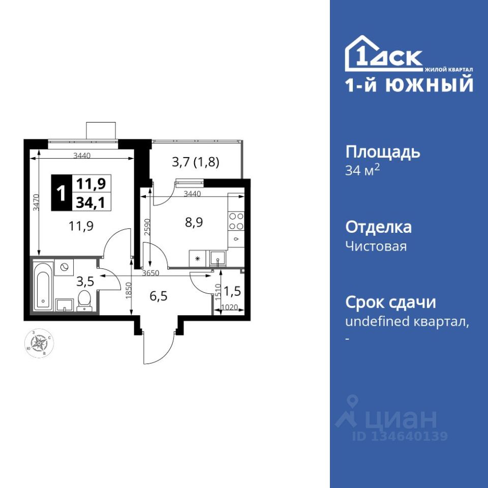Продаётся 1-к квартира номер 680 общей площадью 34.1 кв.м. на 24-м этаже 24 этажного дома. Чистовая отделка. Цена с учётом скидки!