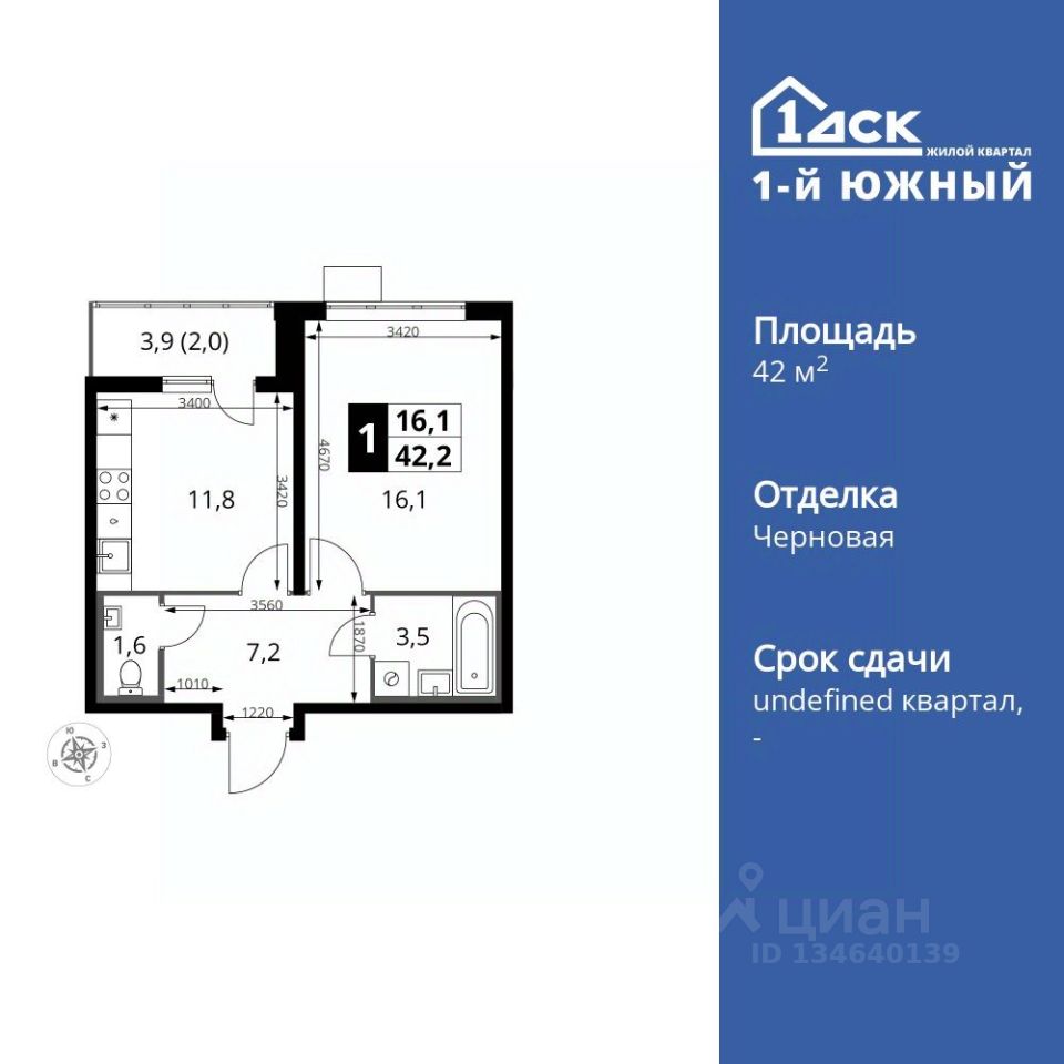 Продаётся 1-к квартира номер 167 общей площадью 42.2 кв.м. на 19-м этаже 25 этажного дома. Отделка Whitebox. Цена с учётом скидки!