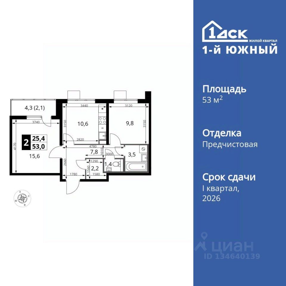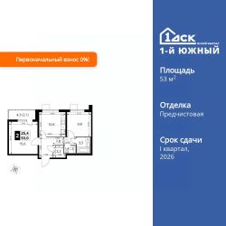 Продаётся 2-к квартира номер 336 общей площадью 53 кв.м. на 19-м этаже 25 этажного здания. Отделка Whitebox. Цена с учётом скидки.