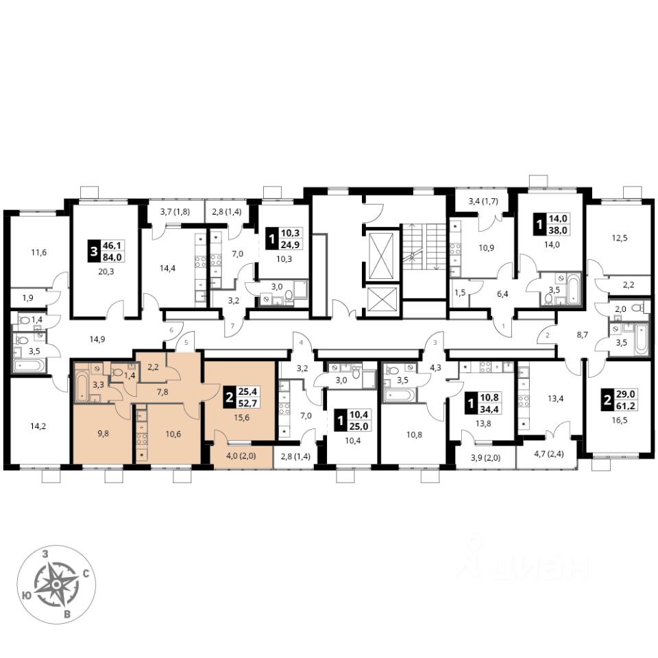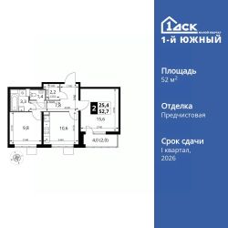 Продаётся 2-к квартира номер 543 общей площадью 52.7 кв.м. на 24-м этаже 24 этажного здания. Отделка Whitebox. Цена с учётом скидки.