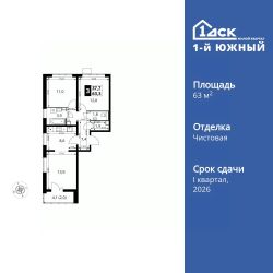Продаётся 3-к квартира номер 909 общей площадью 63.3 кв.м. на 17-м этаже 24 этажного здания. Чистовая отделка. Цена с учётом скидки.